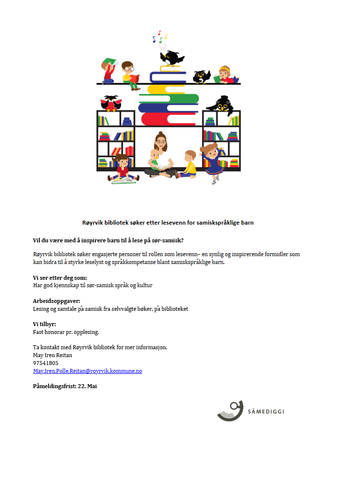 Røyrvik bibliotek søker etter en lesevenn til samiskspråklige barn