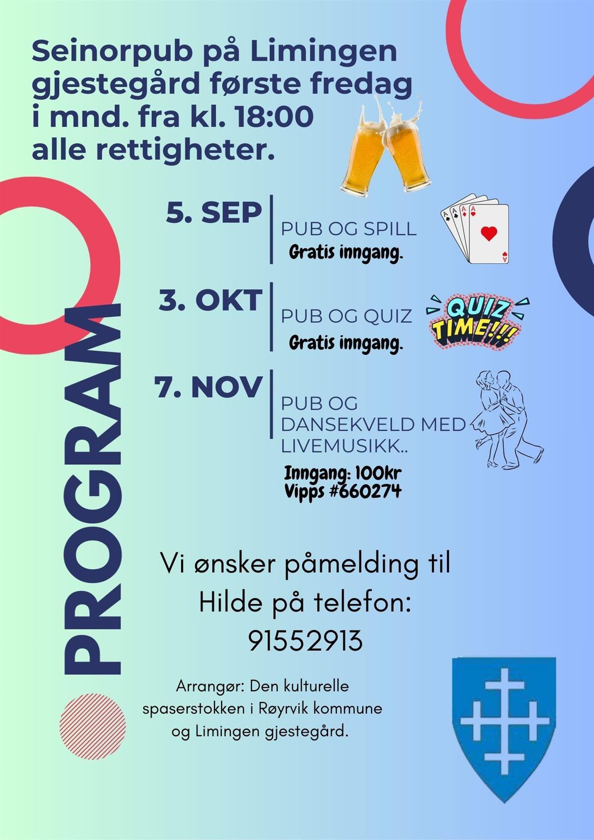 Seinorpub med den kulturelle spaserstokken. Med forbehold om endringer. Påmelding til Hilde 91552913 Sist endret 18.08.2025 13.35