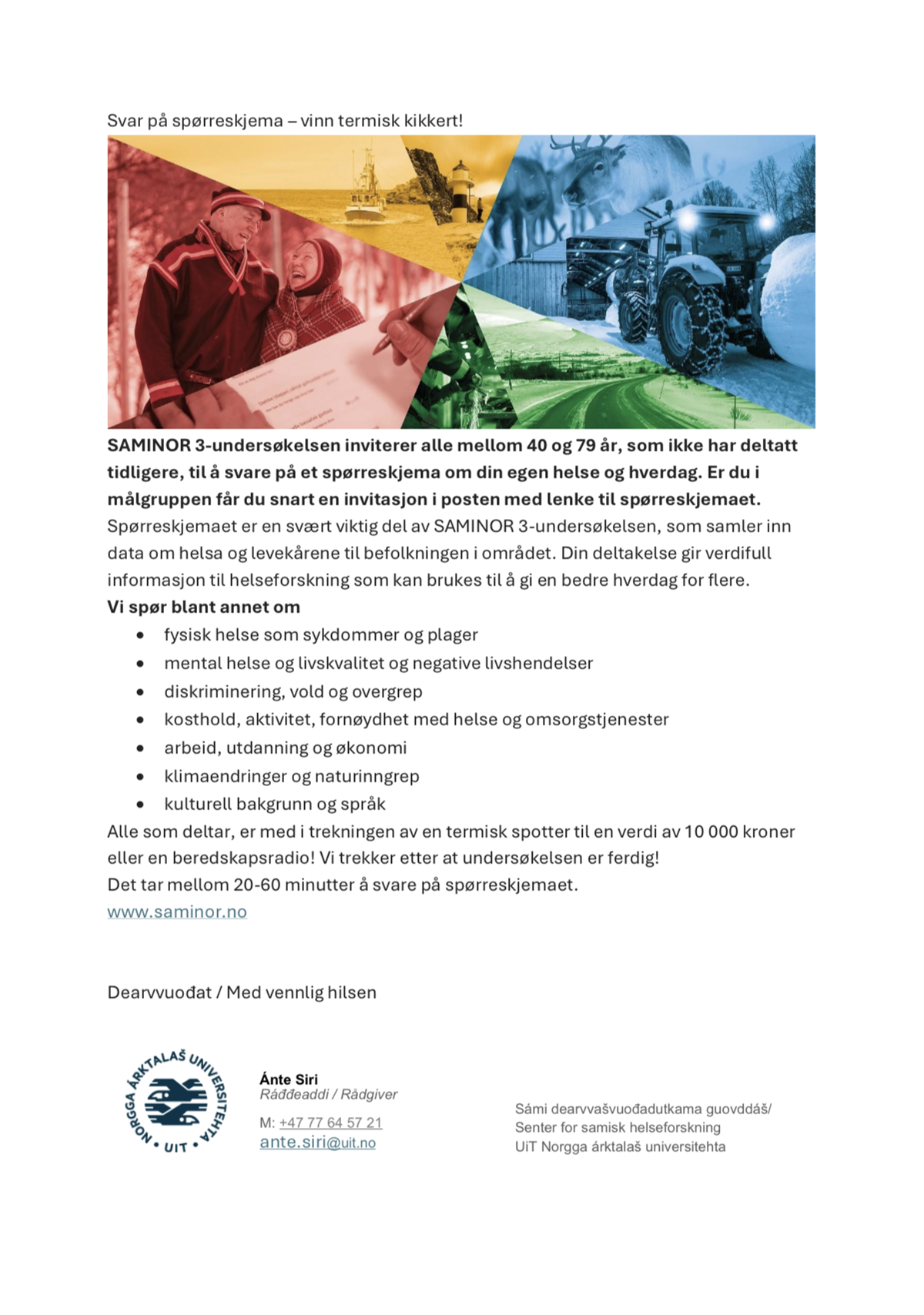 Spørreskjema SAMINOR 3 - Bidra til viktig helseforskning
